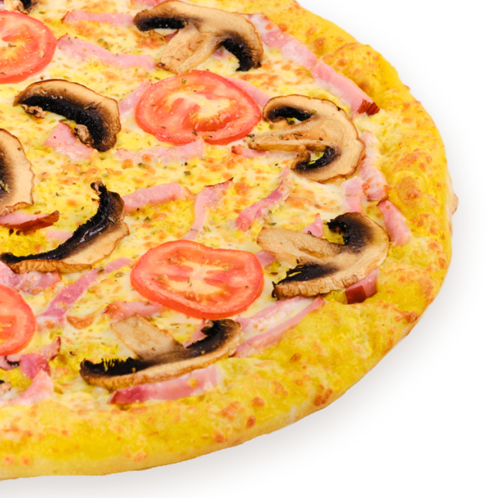 соус куриный, моцарелла, ветчина, шампиньоны, томаты, чесночное масло, орегано