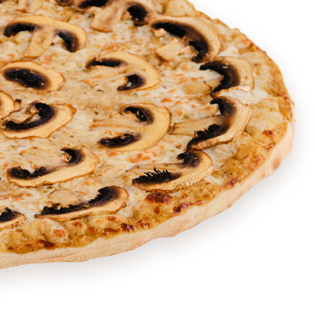 соус сливочно-грибной, моцарелла, шампиньоны, чесночное масло, орегано