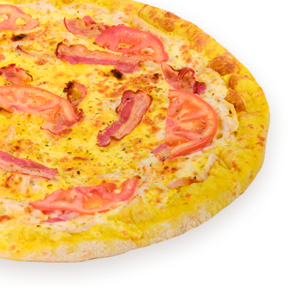 соус куриный, чеддер, куриное филе, моцарелла, бекон, томаты, чесночное масло, орегано